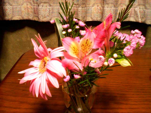 お夕飯を食べた店で、誕生月の私は小さいブーケをいただいた。