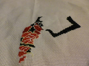 降る雪、積もる雪は、ラメ糸が入ってるけど、画像だと全然わからない。