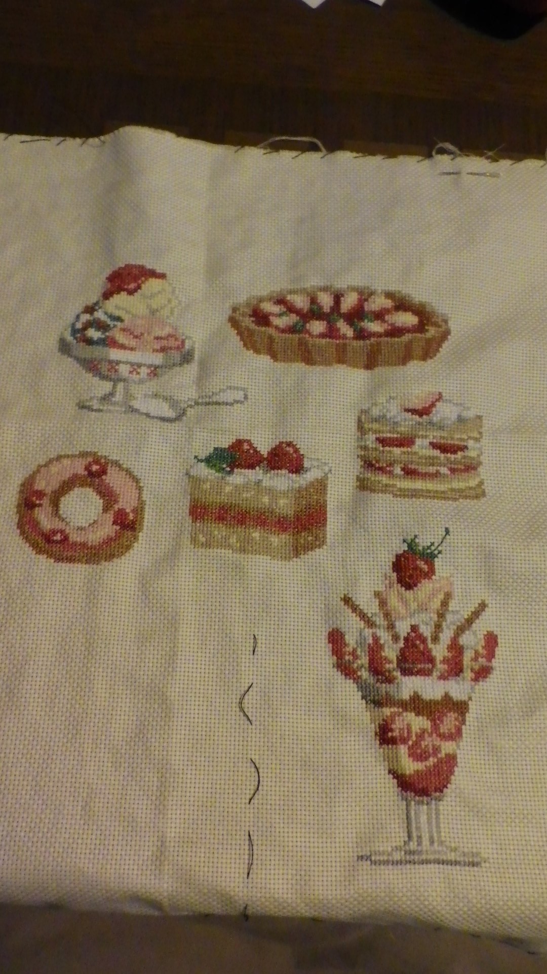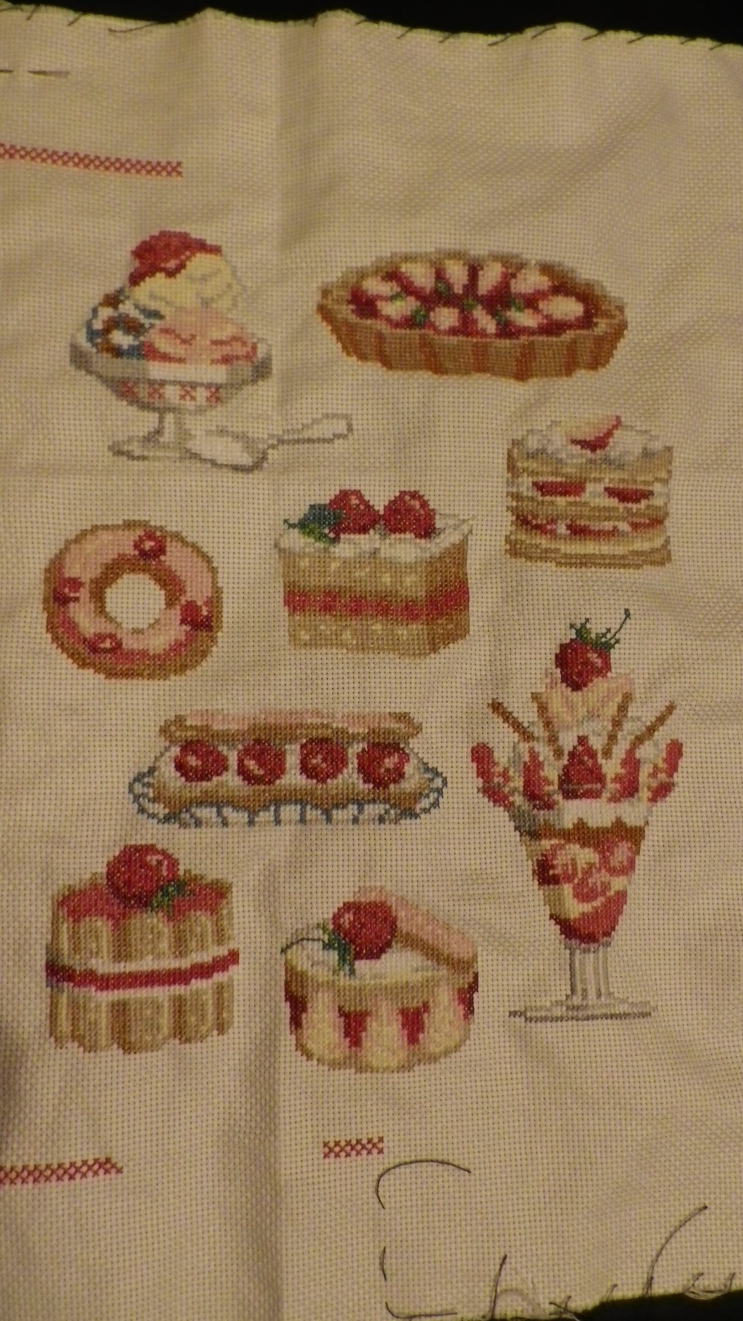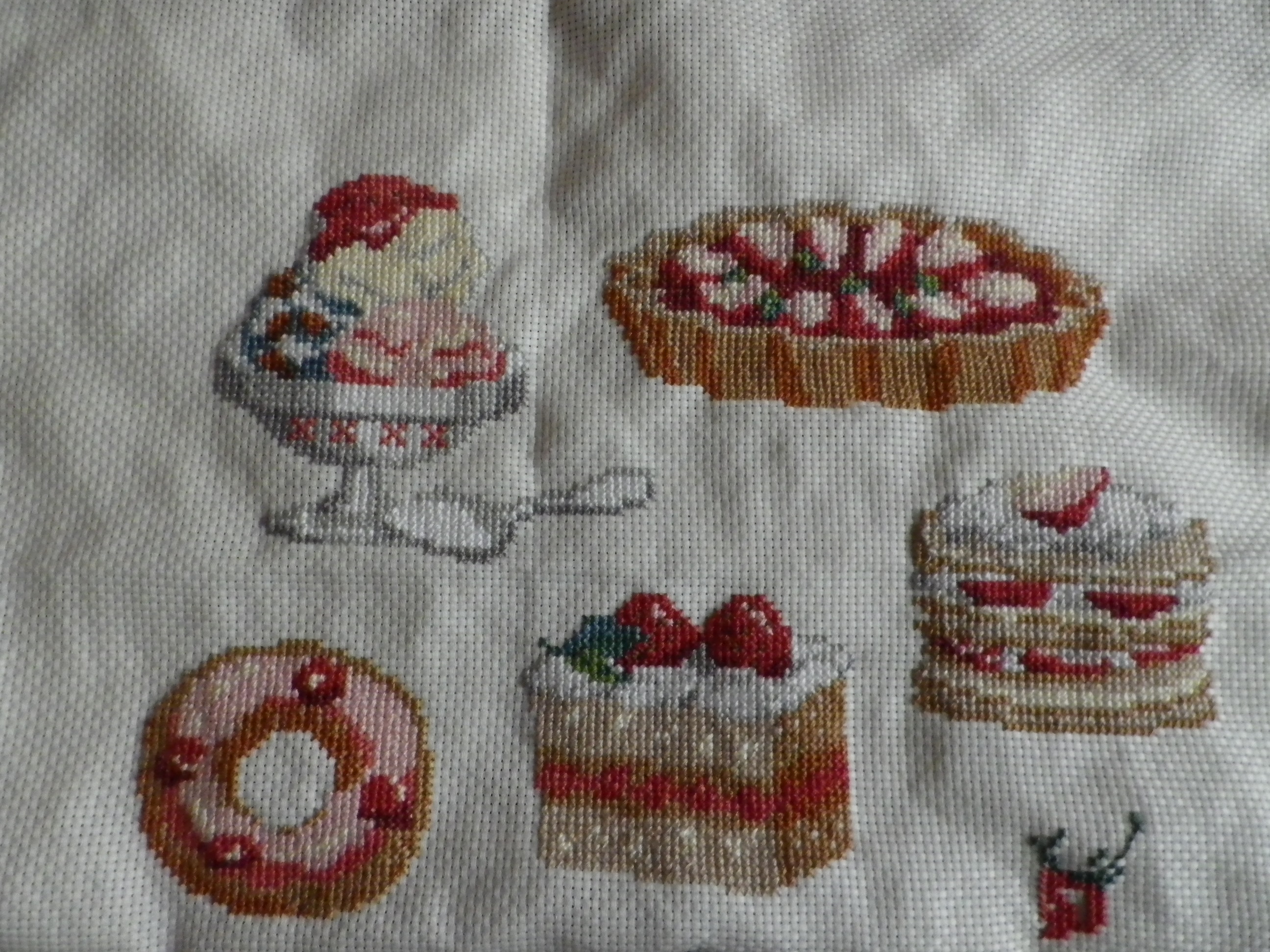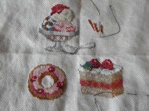 スイーツは全部できた。輪郭ステッチ途中。