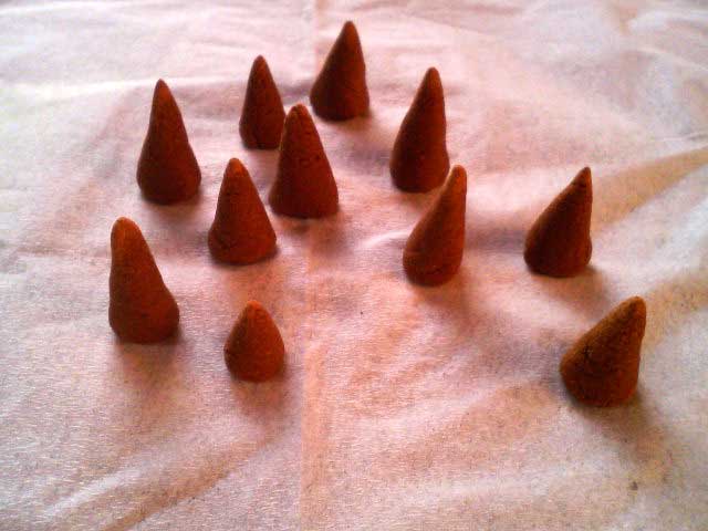 できたてはチョコレートっぽくて、おとーさんが間違えて食べるんじゃないかと思ったけど、だんだん乾燥してお香らしくなってきた。
