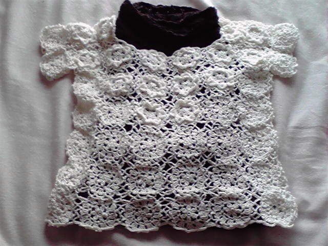 襟ぐりの花びらタイプモチーフは、くしゃくしゃ丸まってしまうので、花びら部分を縫い付けた。