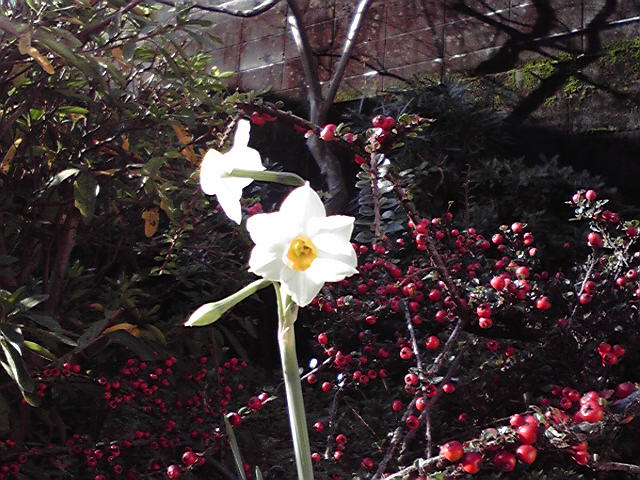 かーさんが好きで気まぐれに植えていた、こんなところから?って感じで、今年も咲いた。