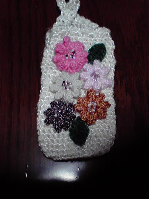 前回もいただいたけど、編み物好きのおばさんから携帯ケースをいただいた。