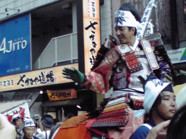 頼朝以外に、市内の学生も馬に乗るし、馬には乗らない(でかすぎる)バレーボール選手もこの暑いのによろいをまとっている。