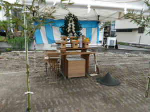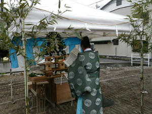 炎天でもなくほどよい曇り空のもと、無事地鎮祭終了。
