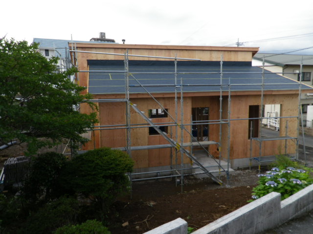 はい、解体・基礎と長い時間を使いましたが、上棟するとあっという間にこんな形になりました。