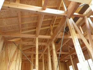 一人で中に入って、見上げた梁。