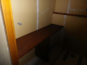 はみ出していた冷蔵庫の場所は食品庫という話もあったけど、そんなに入れる物もないので、電話を置く台やピアノが近くになるので本棚に変身した。