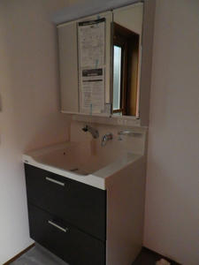 洗面台。形的には選択権はないらしいので、引き出しのみチョイス・・といっても、やることがいっぱいだったので、これを選んだ記憶さえない・・・こちらはキッチン同様ブラウン。