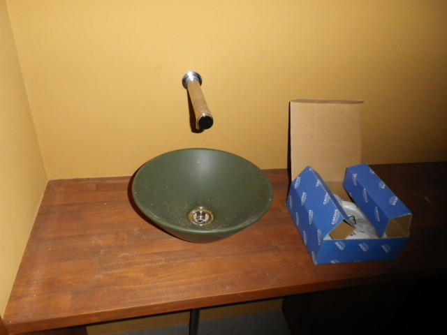 憧れの洗面ボール。工務店の営業は茶系の方がいいって言ってたけど、なぜか私はグリーンをチョイス。