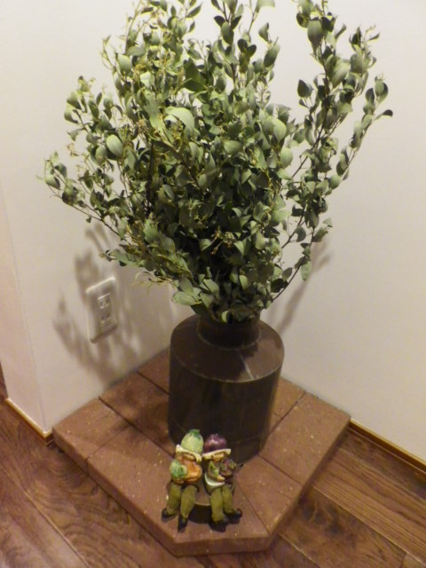 さて、何をどうしたかというと、私と彼女の共通の友達が作って届けてくれたというドライフラワーや彼女が採ってきたという草花 ・・・つまり売り物以外・・を見ていたので、ユーカリのドライフラワーを新築祝いにくれた。ということで、そのユーカリに合いそうな錆錆の器を勧められたので、買ってみた。
