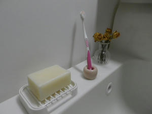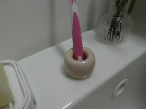 歯ブラシスタンド。底が抜けてるから、汚れなくてよい。300円也。