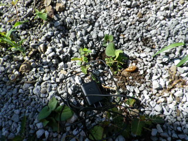 庭にいろんなものが散らばってる。