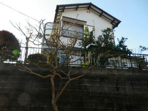 花桃の後ろに写っているアパートから、数か月前消火器とかコーヒーメーカーが我が家の庭に投げ込まれて、フェンスも壊された。