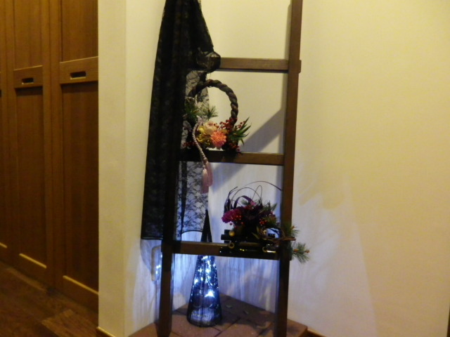 明後日、お正月のお花のお稽古に行くので、とりあえず、クリスマスから正月に仮の模様替え。