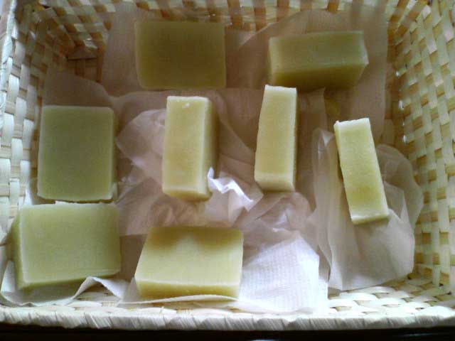 7日に作ったマルセイユ石けんやっとカットした。