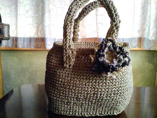 ハマナカのアンダリヤって糸使ってカゴ系バッグを作った。