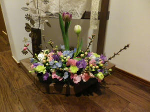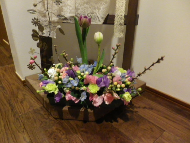 花材は、2種類あって、他の人たちはガーベラだった。開けてみないとわからないので、当たりなのかはずれなのか・・・チューリップの方が大人っぽくて、ガーベラは華やか。