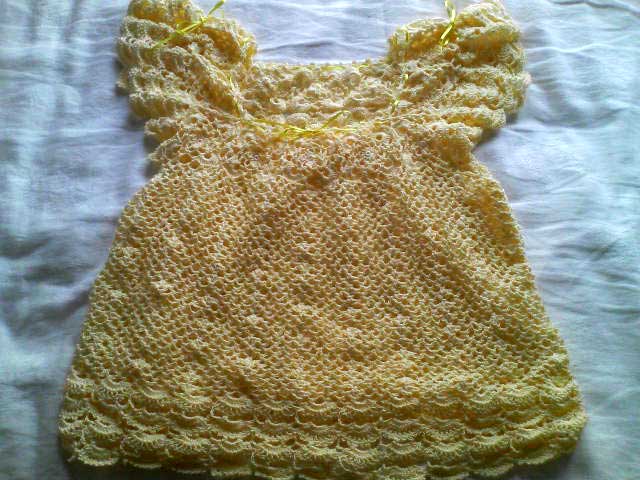 そこで、苦肉の策として、襟は縁編みで縫い縮めさらにリボンでしめることにした。