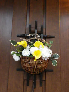 ご近所さんからもよく声を掛けられて、同じものずっと出しっぱなしにしておけず、アレンジメントの稽古の時に、作ったりもしたけど、材料だけでも高くつくので、店じまい造花屋とかネットで探して買っている。