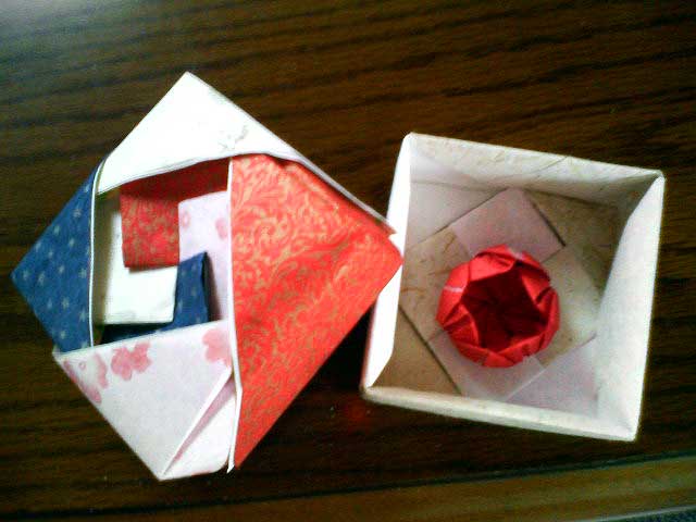 中にこれまた折り紙の赤い小さいお花が入っていた。