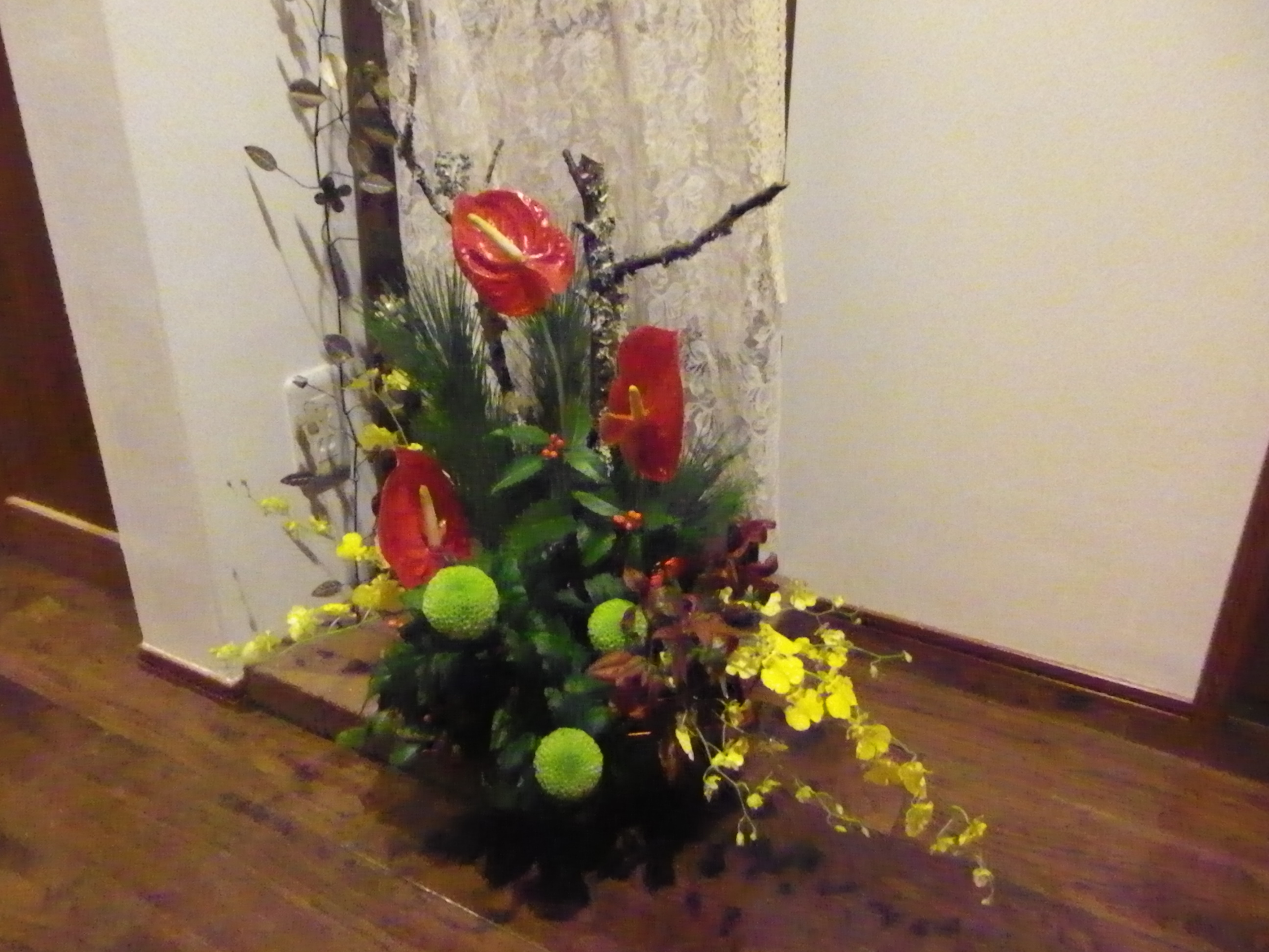 花材は確かに正月っぽいんだけど、なんだかな。なんだかなんだかなんだかな。