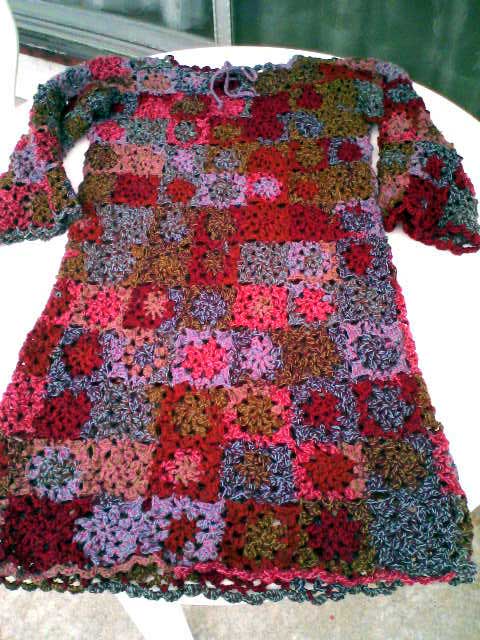 そのままでもパンツとあわせても、どちらでも着られるように、丈にモチーフ1段増やした。