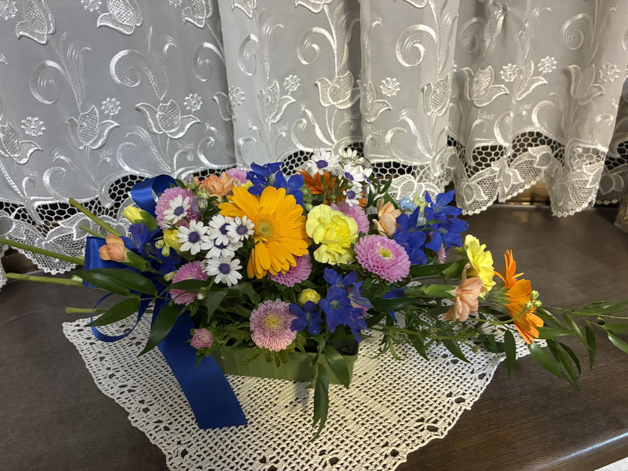 レースのカーテンがある先生のお宅が似合うアレンジメント。
