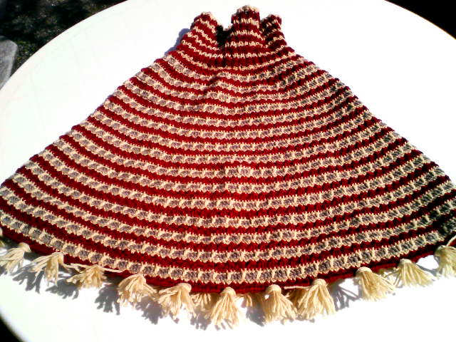 チュニックばっかり編み続けてきたけど、ここらで一発ってことでポンチョを編んだ。