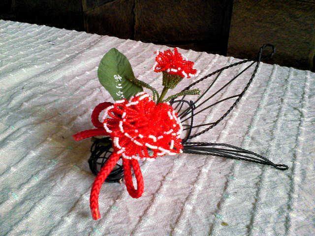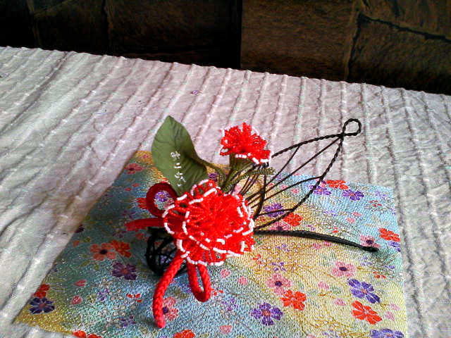 って感じの、ビーズのカーネーションを作った。